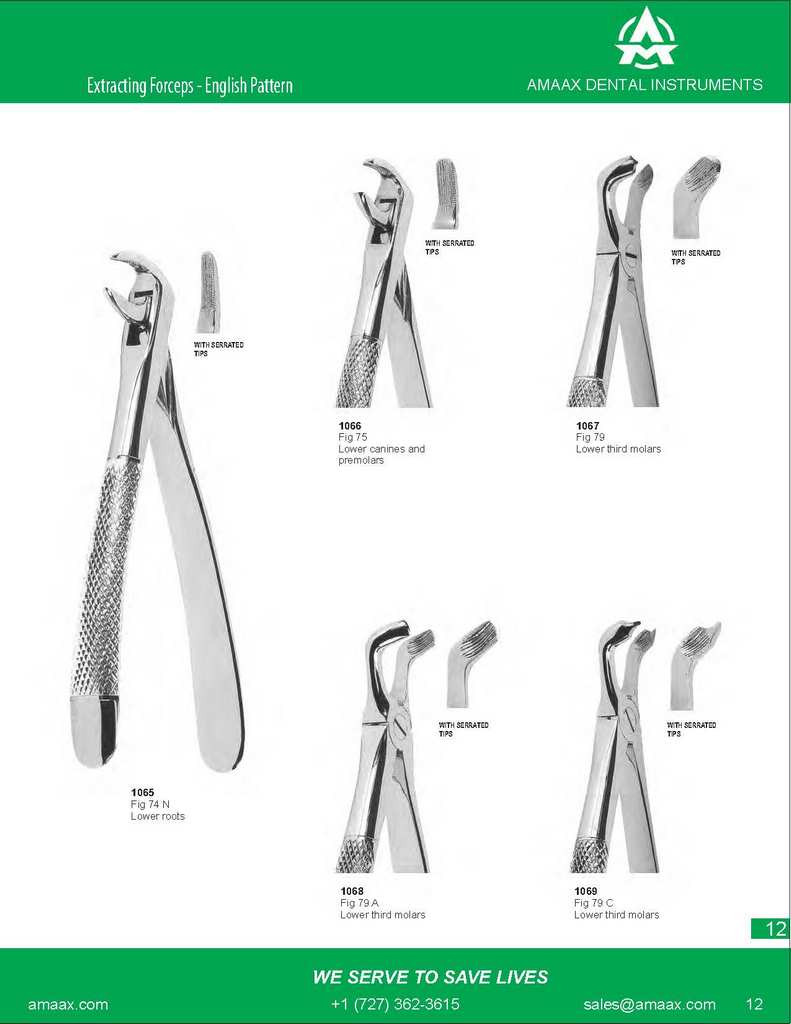 WITH SERRATED TIPS WITH SERRATED TIPS WITH SERRATED TIPS 1066 1067 Fig 75 Fig 79 Lower canines and Lower third molars premolars WITH SERRATED WITH SERRATED TIPS TIPS 1065 Fig 74 N Lower roots 1068 1069 1072
