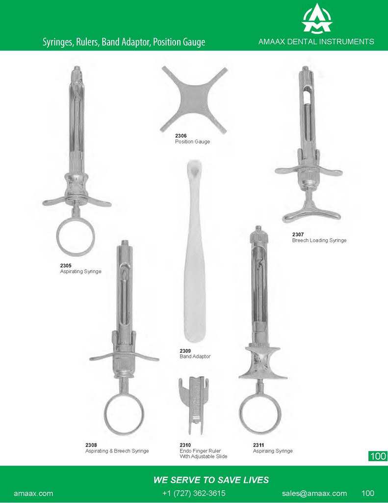2305 Aspirating Syringe 2306 Position Gauge 2309 Band Adaptor 2307 Breech Loading Syringe 2308 2310 2311 Aspirating & Breech Syringe Endo Finger Ruler With Adjustable Slide Aspiraing Syringe