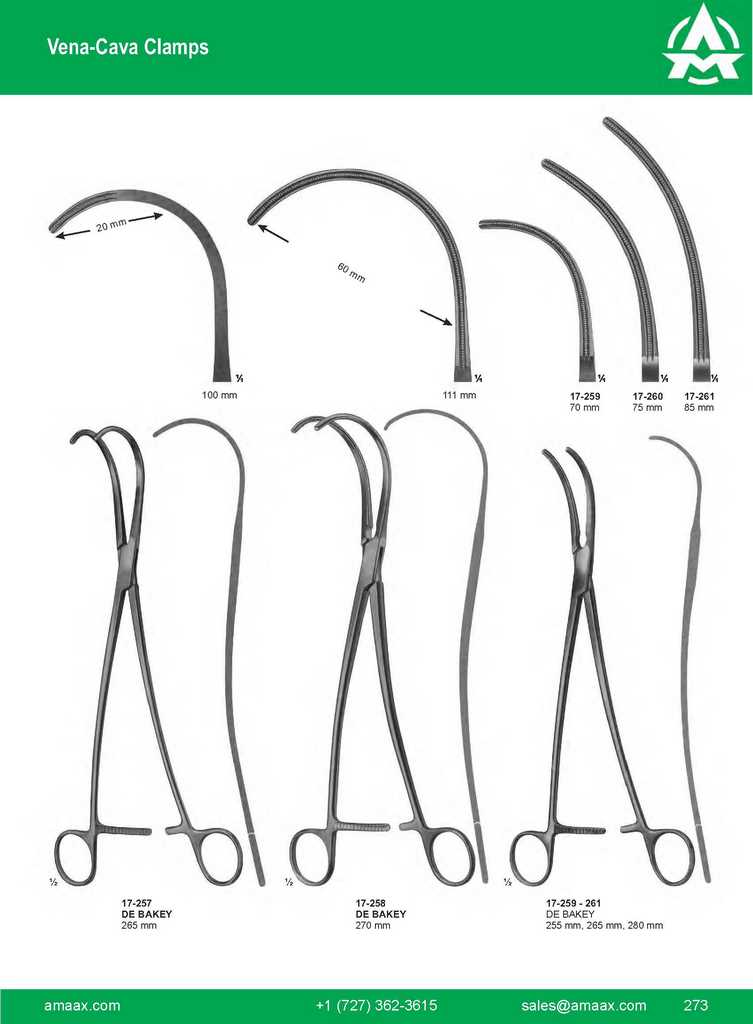 LELAND-JONES 195 mm 77 mm 17-248 DE BAKEY 200 mm lliac clamp 17-249 WERTHEIM 250 mm 67 mm 90 INSTRUMENTS R 273