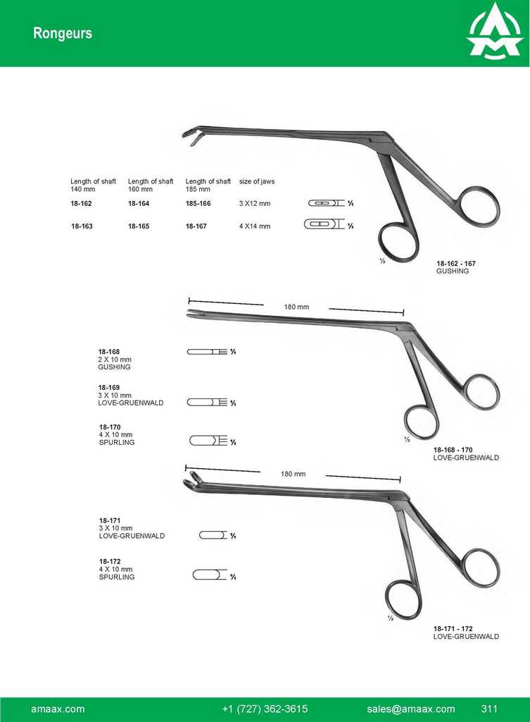 18-118 – 122 WEIL-BLAKESLEY 120 mm 130 Angled positions for rongeurs 18-118 3,0 mm 18-119 3,6 mm 18-120 4,2 mm 18-121 4,8 mm 18-122 5,8 mm 18-123 TAKAHASHI 3 mm 120 mm 18-124 TAKAHASHI 3 mm 120 mm INSTRUMENTS R 311