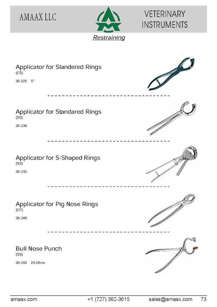 Restraining Applicator for Slandered Rings (CS) 30-225 5? Applicator for Standared Rings (SS) 30-230 Applicator for S-Shaped Rings (SS) 30-235 Applicator for Pig Nose Rings (CP) 30-240 Bull Nose Punch (SS) 30-245 26.50cm