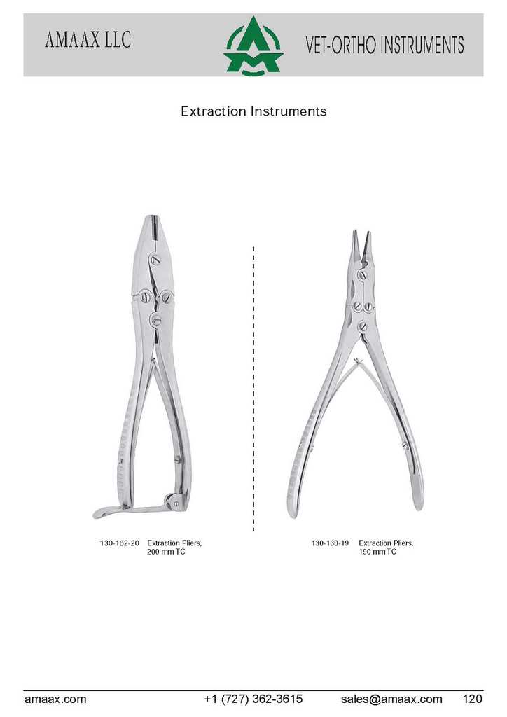 Extraction Instruments 130-162-20 Extraction Pliers, 130-160-19 Extraction Pliers, 200mmTC 190mmTC